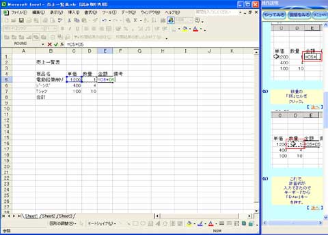 ※ご自身のパソコンにエクセルをお持ちの方は、実際のエクセルソフトで、お持ちでない方は、類似体験によって学習ができます。