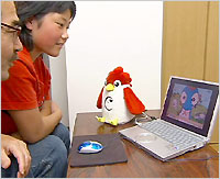 パソコンにつないで付属のCD-ROMを起動すれば、英会話ロボット単体で使うよりも、たくさんの英会話を学習することができます。