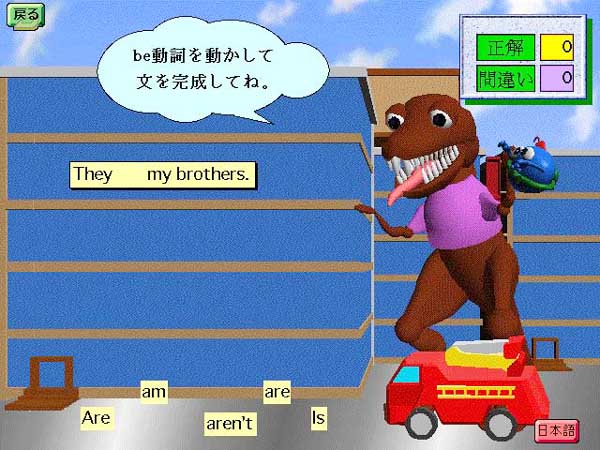 中学3年間の英文法を楽しくおぼえちゃおう 耳から英語になれるために、繰り返しネイティブアメリカンの英語が流れます。 文法を勉強しながら、同時に耳でも覚えていく。英語の上達は耳になれさせるのが一番です。また、日常よく使う言葉をゲームに取りこんで楽しく遊べるようになっています。 あいさつや、海外の街角で困った時などに必要な、ちょっとした事だけど重要な会話・・・。これらを学習していく事が出来ます。 中学生だけでなく、大人の方まで充分に楽しく学習できる内容となっています。 |