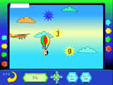 飛行機を上下にうまく操りながら雲といっし ょに流れてくる文字をキャッチして、出題されている単語を作ってください。