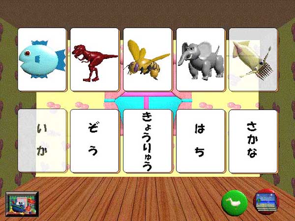 あいうえおキーボードのひらがなをマウスでクリックすると、発音や単語を覚える事が出来ます。テンポのよいリズムにあわせて楽しくひらがなを覚えましょう。絵あわせゲームでは単語と絵を一致させる事ができるかな? |