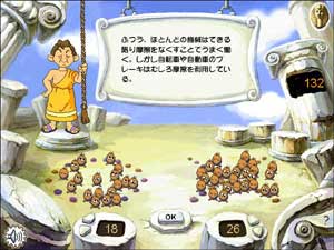 このソフトで学習できる内容がクイズになって出題されます。問題の文章が正しいかどうか、正しければ○へ、正しくないと思ったら×へビーニーズ(まめ軍団)を移動させましょう。自信が無かったら半分ずつ○と×にビーニーズを置いても良し、自信のある答えの方に多く置いても良し。新感覚○×ゲームです。もちろん学習効果もバッチリです。 |